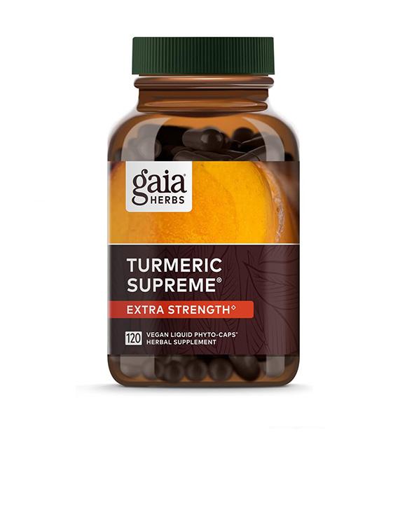 Our final choice is another great company. Gaia Herbs Turmeric Supreme contains turmeric with black pepper in veggie capsules per serving. Gaia Herbs lists the amount of each ingredient they use in the product.